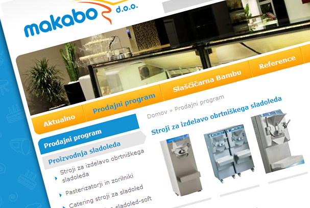 Spletni katalog strojev in naprav za podjetje, ki se ukvarja z distribucijo slaščičarske opreme.